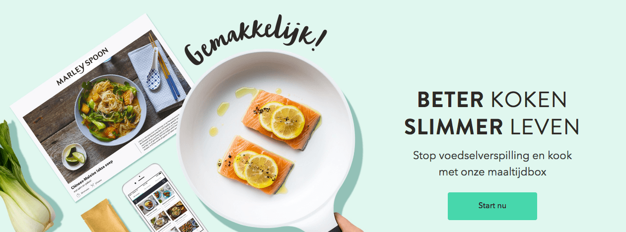 Klik hieronder op de knop 'Bekijk Kortingscode'. Je wordt dan direct doorgestuurd naar de actiepagina waar je jouw eerste 4 boxen kunt bestellen met €90,00 korting. Het voordeel wordt verdeelt over verschillende boxen (49% + 20% + 15% + 15%).€90,- korting op Marley Spoon